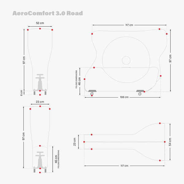 The Aerocomfort 3.0 Road Bike Travel Bag offers the perfect solution for transporting your road bike by air—without the need to remove the handlebars, saddle, or seatpost. This design preserves your exact bike fit and setup. Its exterior contours are precision-shaped to match your bike’s frame, reducing unnecessary bulk. Constructed from durable 3D-Padding™ triple-layer tear-resistant fabric and secured with a TwistZip™ Double Coil zipper, it ensures superior protection. Inside, a built-in kickstand keeps the bike stable during transit, complemented by two integrated wheel pockets for added convenience. Trusted by professional riders worldwide, the Aerocomfort 3.0 has proven its reliability through over 35,000 flights each year, earning its reputation as a benchmark in bike travel protection.