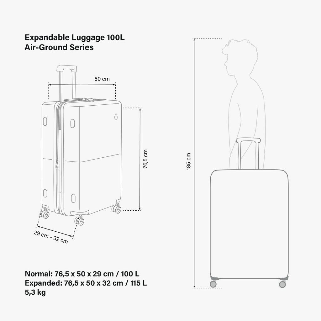 Perfect for both international and domestic travel, the Expandable Trolley Air-Ground 100L blends style, practicality, and performance — a reliable companion for travelers who value efficiency, security, and elegance wherever their journey takes them.
