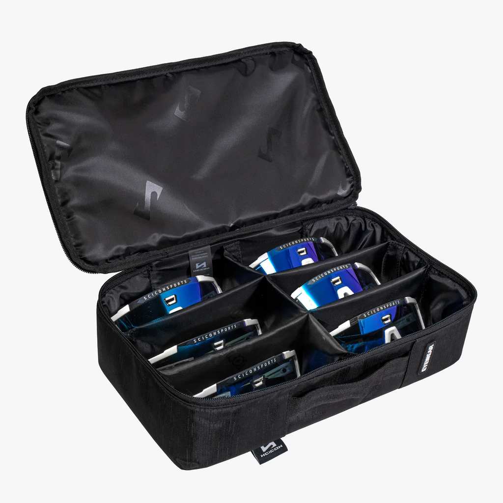 This versatile and ergonomic padded case is designed to securely hold up to six pairs of sports or lifestyle eyewear. Crafted from durable 3D-Padding™ triple-layer tear-resistant fabric, it provides excellent protection against scratches, dust, and impacts. Lightweight and easy to carry, it also doubles as a display case. The external Velcro strips allow multiple cases to be connected, making it the ideal storage and organization solution for eyewear enthusiasts.