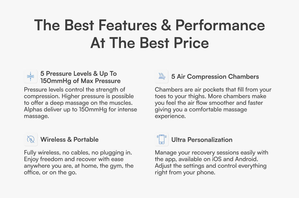 - Up to 150mmHg Compression: Adjustable, deep recovery