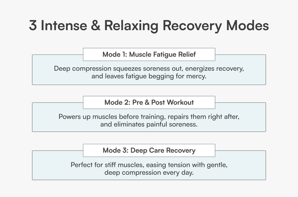 - 3 Modes: Optimized for fatigue relief, pre/post workout, and deep care